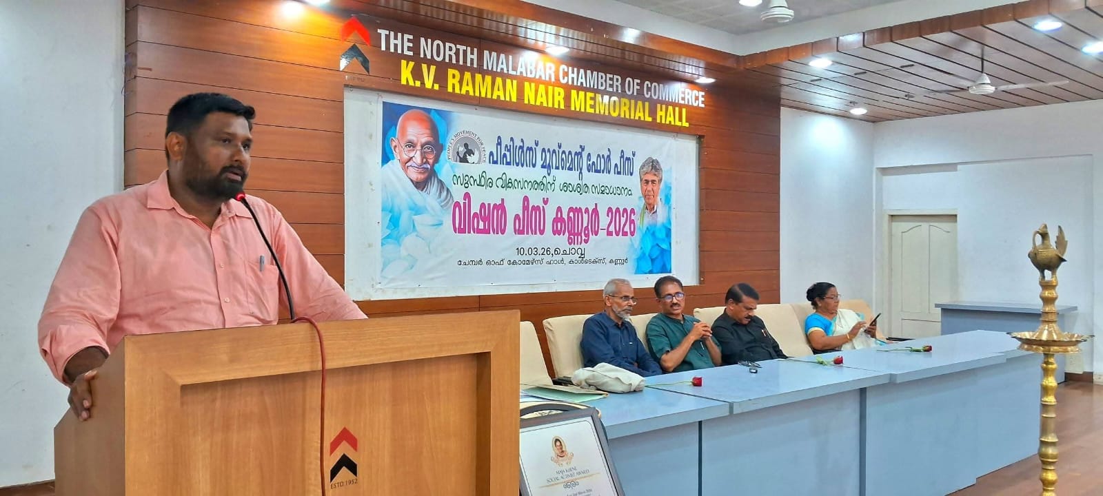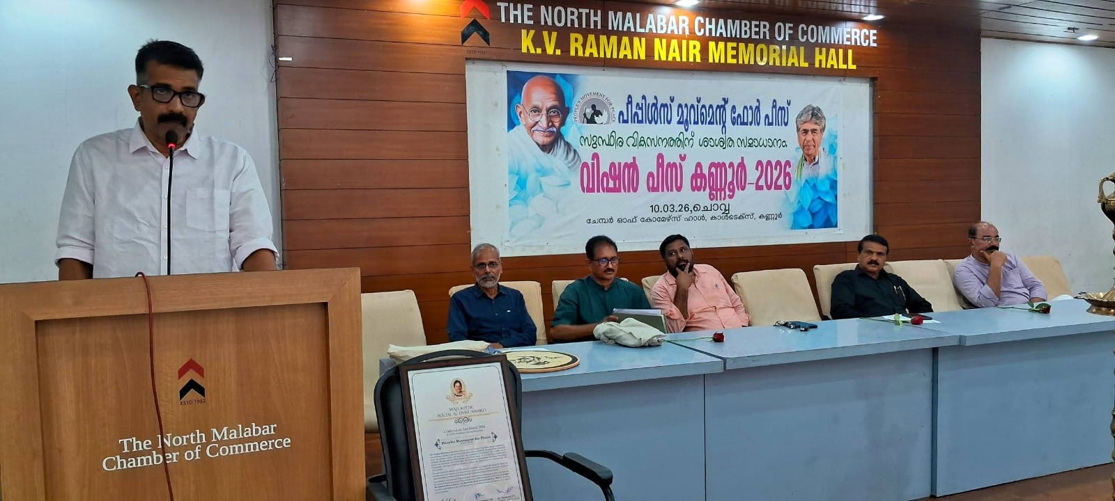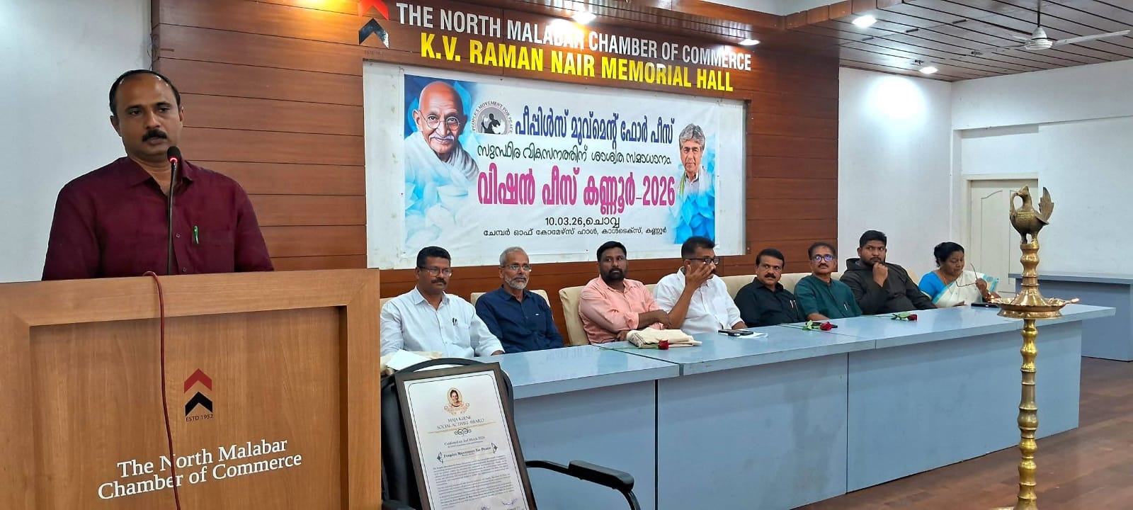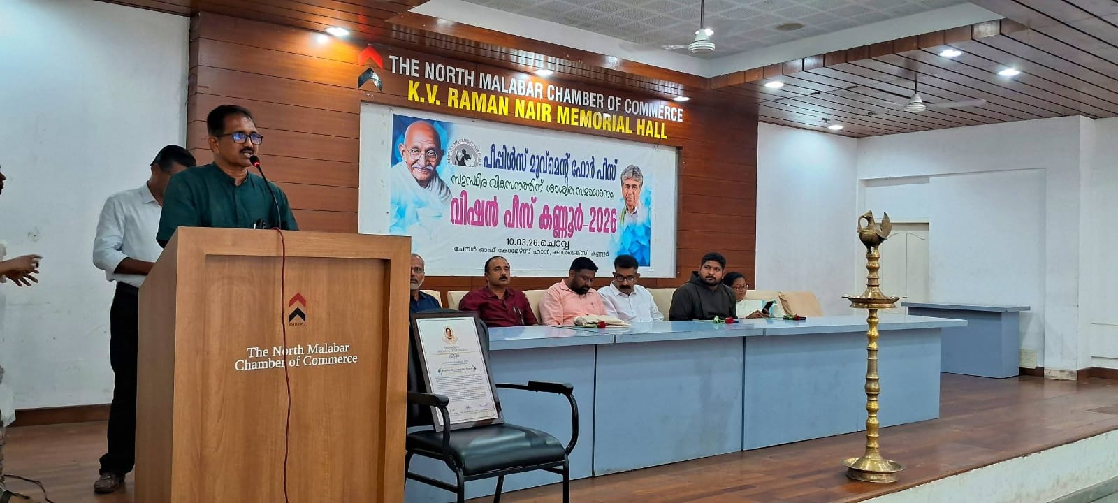 In the backdrop of the 2026 Kerala Legislative Assembly elections, the People’s Movement for Peace (PMP), Kannur, organized a remarkable peace congregation titled “Vision Peace Kannur – 2026” on 10th March 2026 at the Chamber of Commerce Hall. The event aimed to highlight the vital message of “Sustainable Development through Lasting Peace” and underscored the importance of prioritizing constructive discussions on development while ensuring a peaceful election period. The event was inaugurated by Adv. Binoy Kurian, President of Kannur District Panchayat, who reminded attendees of the necessity for a calm and harmonious political atmosphere during the forthcoming elections.