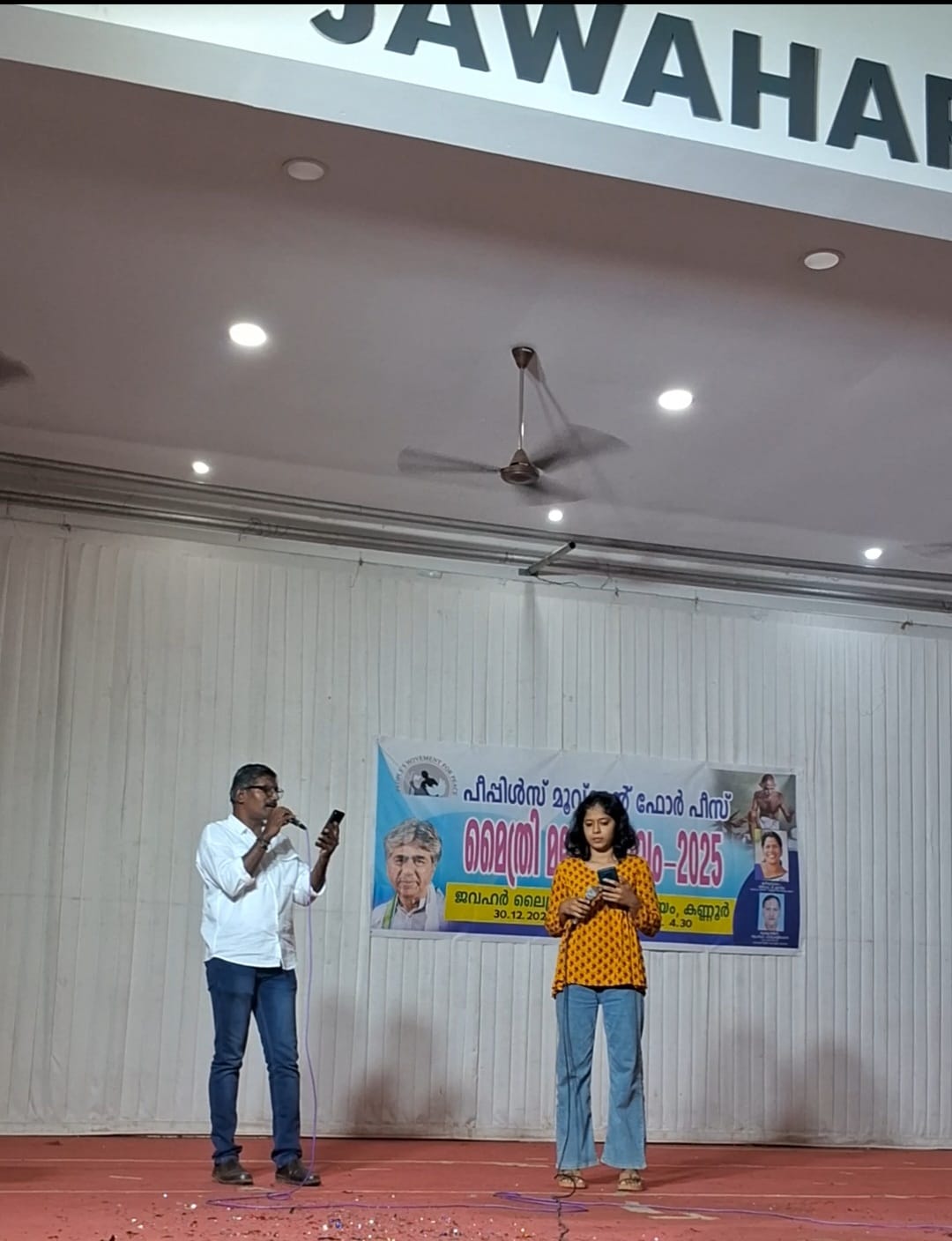Several leaders from the social and cultural spheres extended their greetings and solidarity, acknowledging the People’s Movement for Peace as a consistent and credible voice for non-violence in Kannur. Following the presentation of the annual report and the vote of thanks, the celebrations concluded on a joyful note with colourful cultural performances by children and other artists, adding warmth and vitality to the Maitri Mahotsavam. As the People’s Movement for Peace steps into its ninth year of dedicated service, the celebration stood as a reminder that peace is not merely an idea, but a continuous collective effort — one that grows stronger through dialogue, culture, and community participation. 🌿🕊️