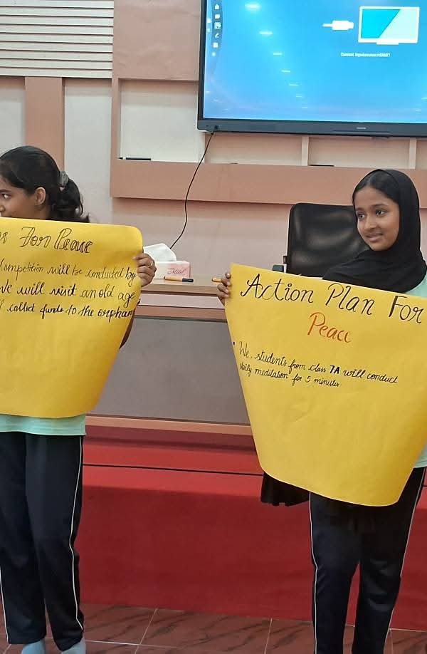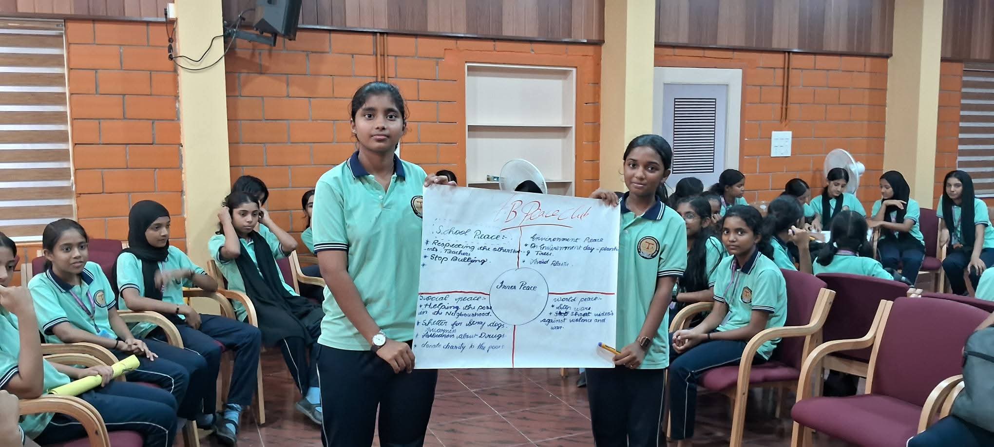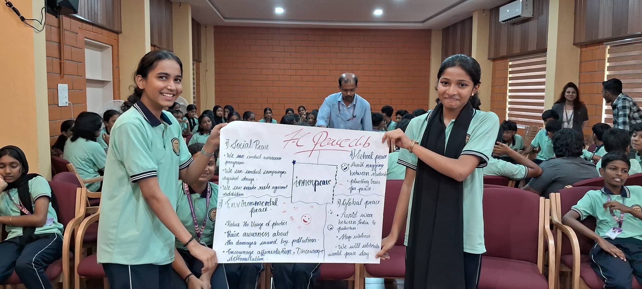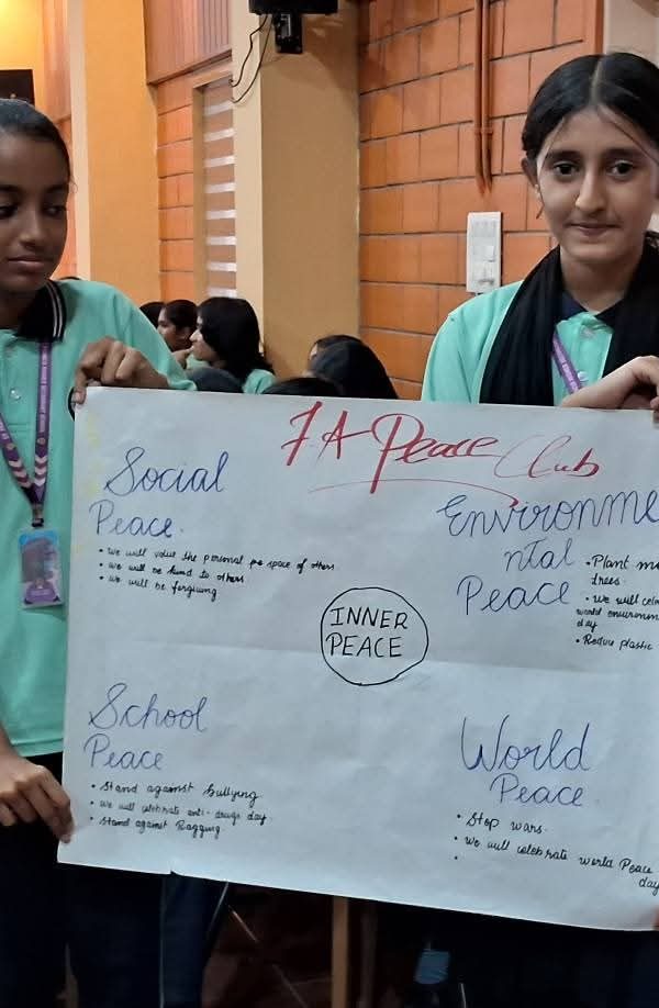 Students enthusiastically participated by writing down practical actions they could take in each of these areas. Their responses reflected creativity, awareness, and a sincere desire to contribute positively to society. More than just an activity, it became a learning experience that helped students realize that even small actions can make a significant difference in promoting peace. The initiative successfully moved beyond theoretical understanding and inspired students to take personal responsibility for building peace in their surroundings. It instilled confidence in them that they, too, can be agents of change. Heartfelt appreciation goes to the enthusiastic students for their creative contributions and to the dedicated teachers who guided and facilitated this meaningful activity. Such initiatives continue to strengthen the vision of nurturing a generation committed to peace, harmony, and responsible citizenship.