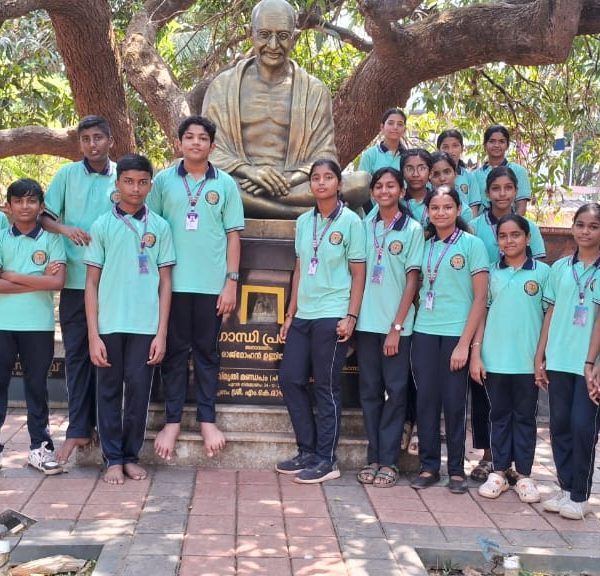 Following the museum, students visited the ashram established by Swami Anandatheertha, where they saw the Gandhimurti and learned about the social reforms and initiatives led by the Swami in Payyannur. This experience provided deeper insight into grassroots movements for social change. The educational journey concluded with a shared lunch, leaving students inspired and enriched by the lessons of history, courage, and service. By engaging directly with the sites and stories of the past, the students not only gained historical knowledge but also developed a deeper sense of civic awareness and an appreciation for the values of peace and nonviolence. The journey reinforced the idea that understanding our history is essential for nurturing responsible, conscious, and peace-oriented citizens. This educational trip was a vivid reminder that the principles of Gandhiji—courage, nonviolence, and justice—remain relevant today, inspiring the younger generation to carry forward the legacy of peace in their own lives.