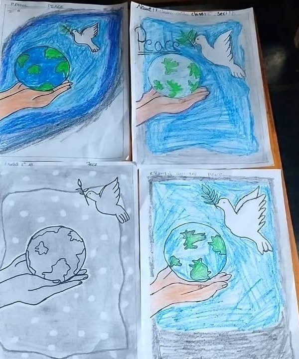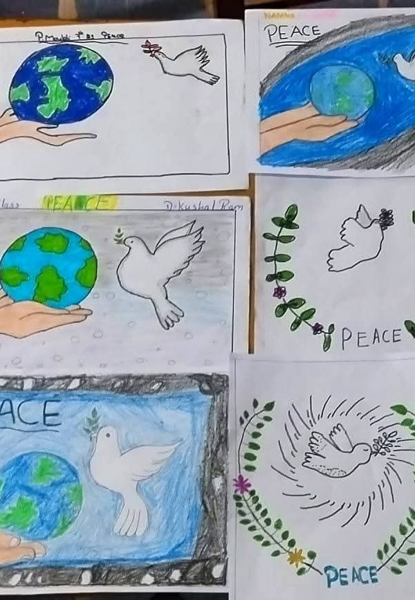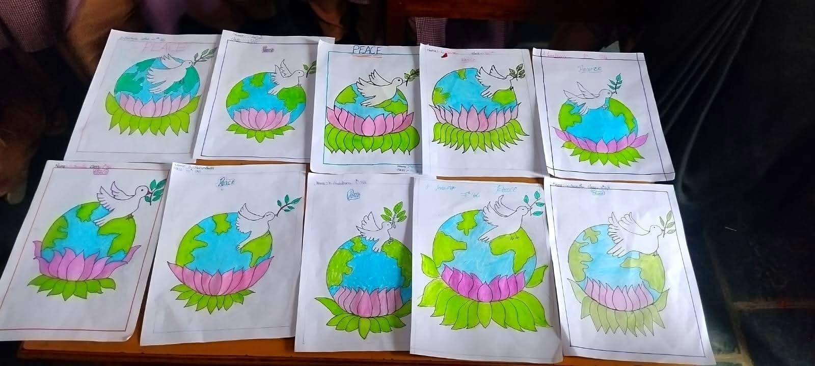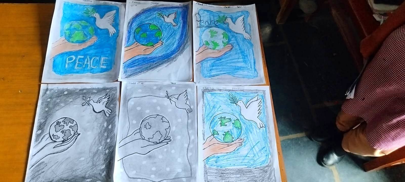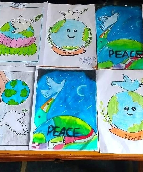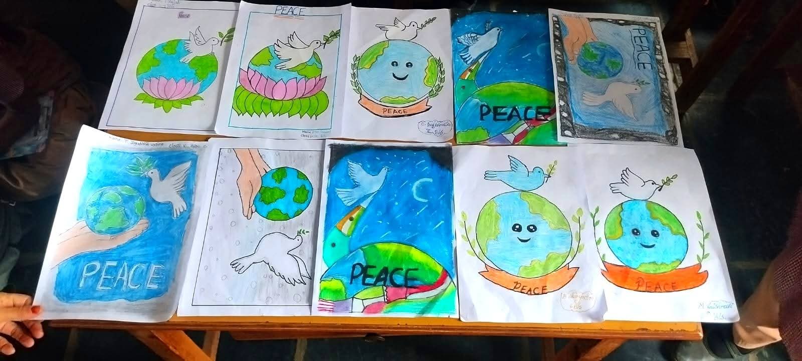 The activity witnessed enthusiastic participation from children, who expressed their understanding of peace through various artistic forms. Their works reflected innocence, hope, and a deep longing for a world free from conflict. Such initiatives help children to not only understand peace as an abstract idea but also to practice it in their daily lives—through kindness, tolerance, and mutual respect. The Peace Club continues to serve as a platform where students can engage in constructive activities that promote unity and social responsibility. These efforts, though small in scale, carry the potential to create a lasting impact by shaping the mindset of the younger generation.
